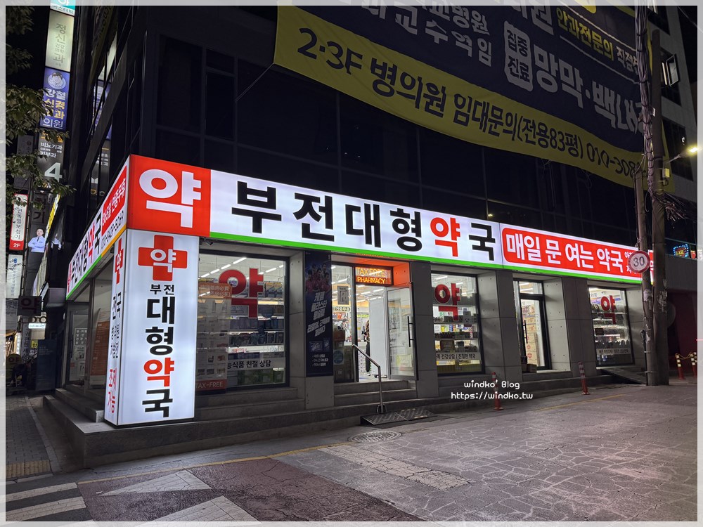 부전대형약국(釜田大型藥局)鄰近西面站 13 號出口,也就是你如果要走 13 號出口去吃百年鐵鍋炸全雞的話,一定會經過的路口!!