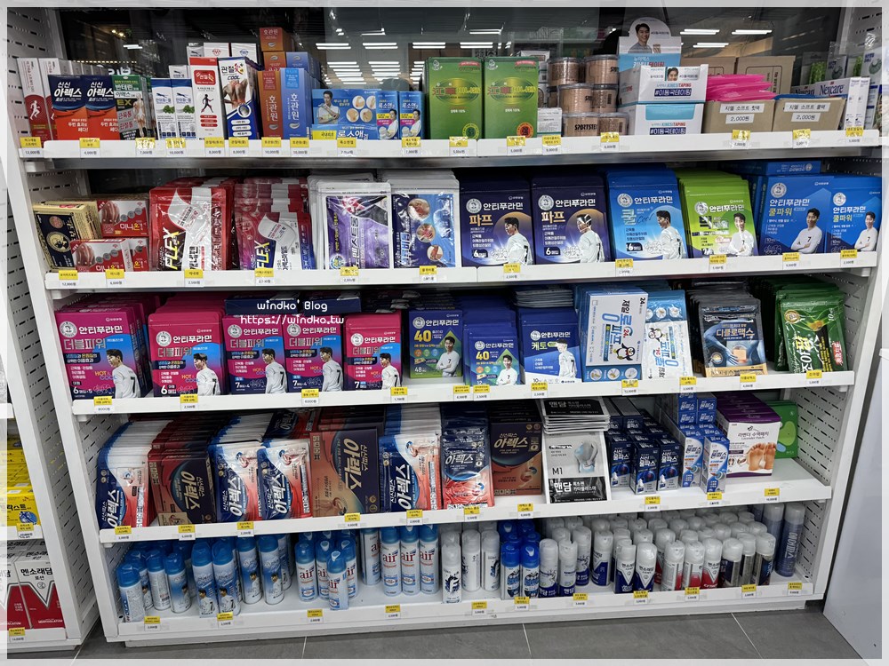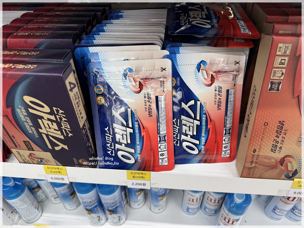 雖然現在台灣的社群平台、短影音等等,都在一窩蜂地推薦韓國藥局裡的醫美相關產品,但我個人對那些沒有興趣也沒做功課,所以進來後直接走往痠痛藥膏痠痛貼布區。