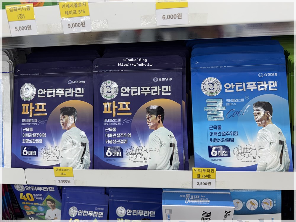 我的目標--孫興慜(손흥민)代言的肌肉痠痛乳液「안티푸라민로션 S( Antiphlamine Lotion S)」位在最下層。