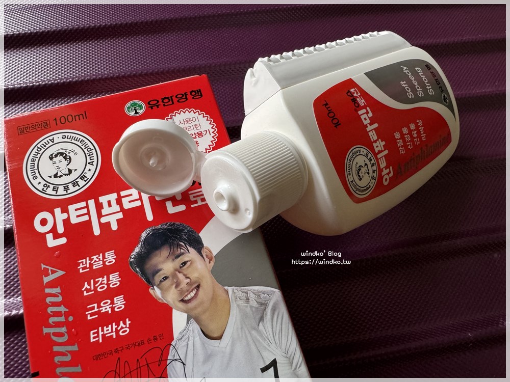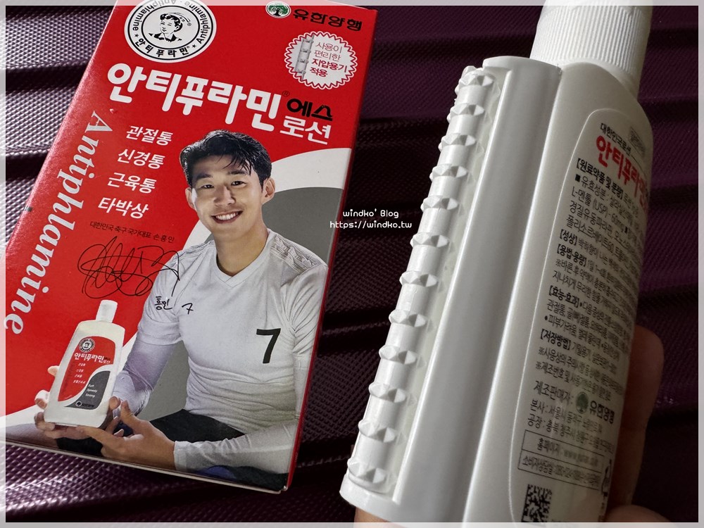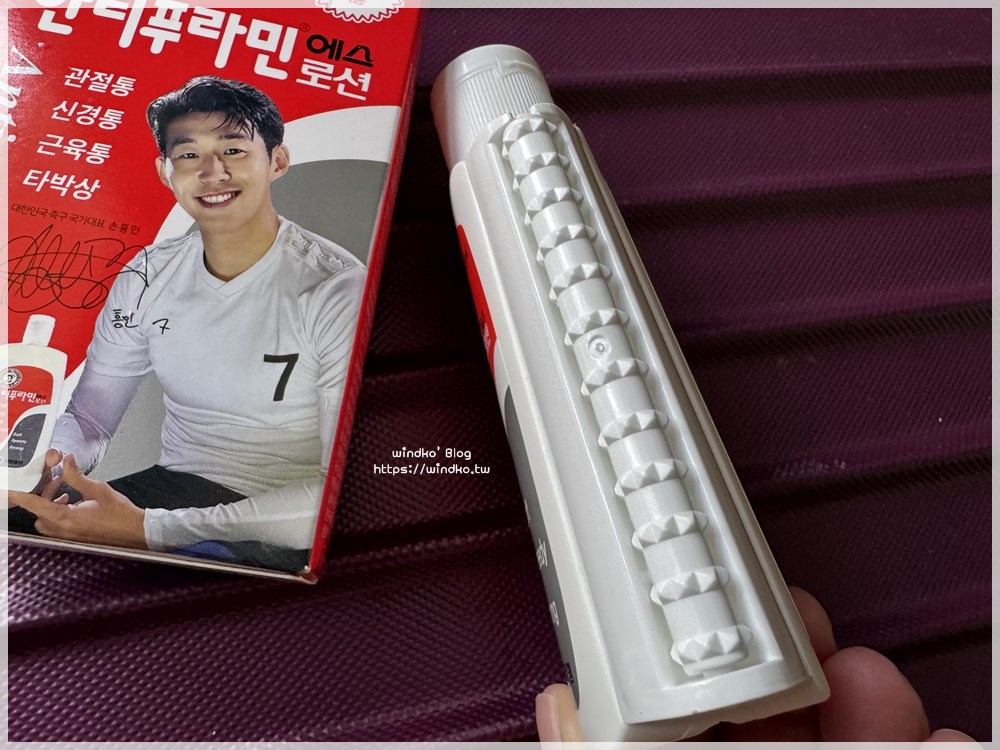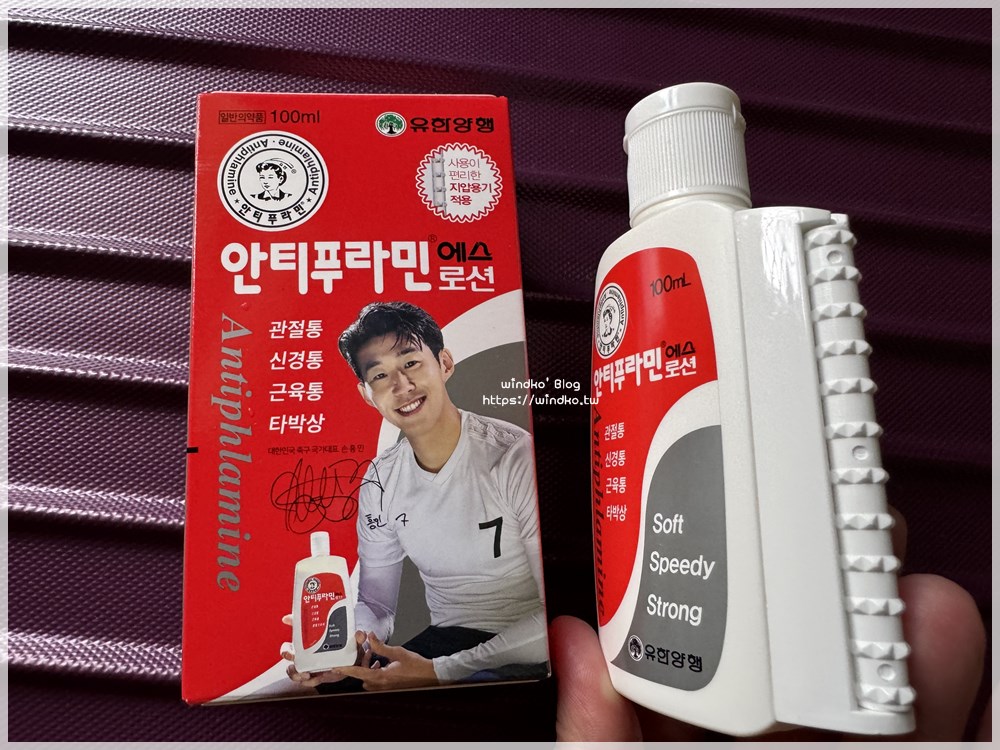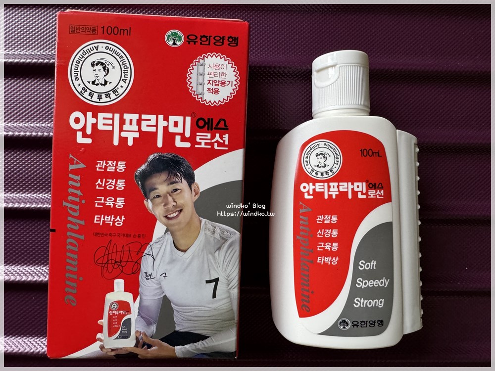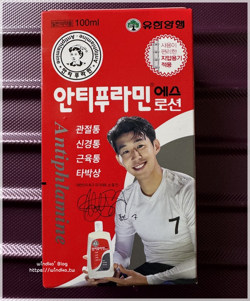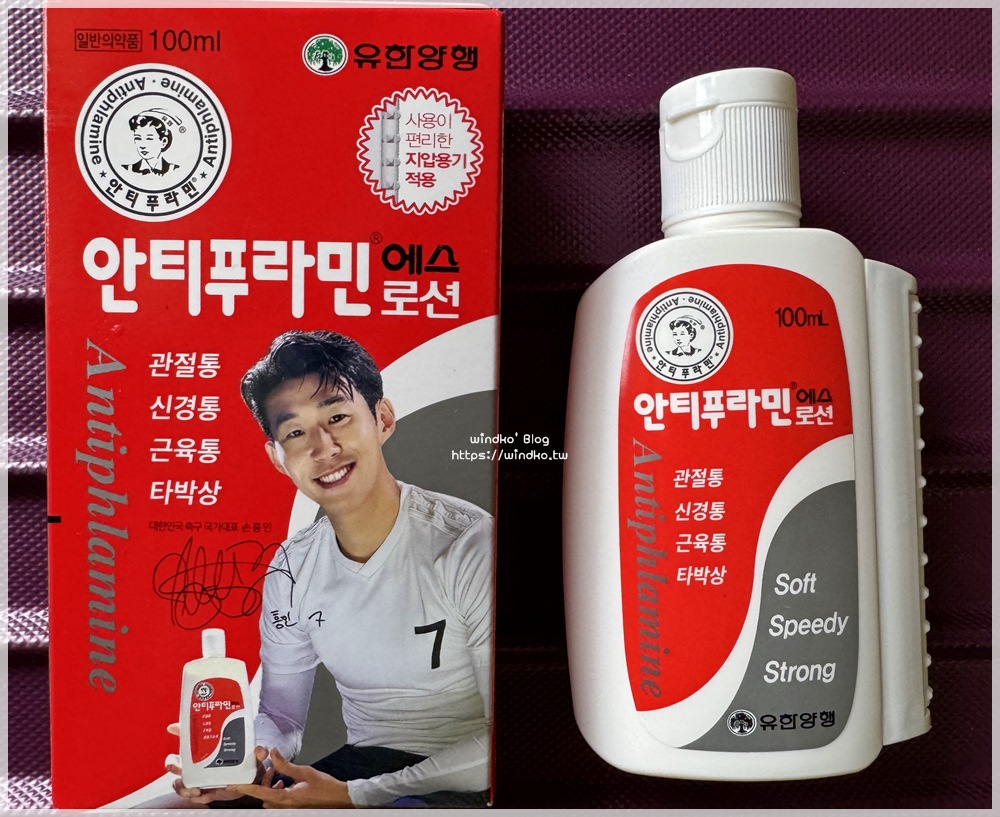 足球運動員孫興慜(손흥민)代言的肌肉痠痛乳液「안티푸라민로션 S( Antiphlamine Lotion S)」!