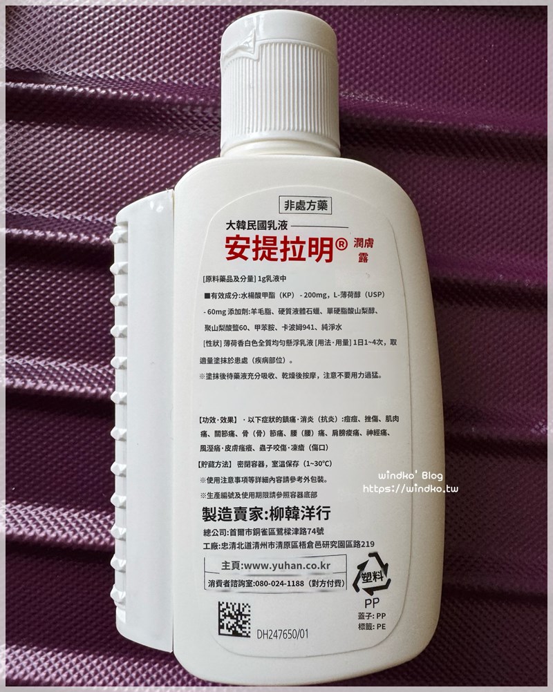 它最大的特色是藥局就能買到、非處方藥、藥效很強、瓶身附滾輪,小瓶 100 ml 的價位大概會落在 2500~7000KRW 之間。