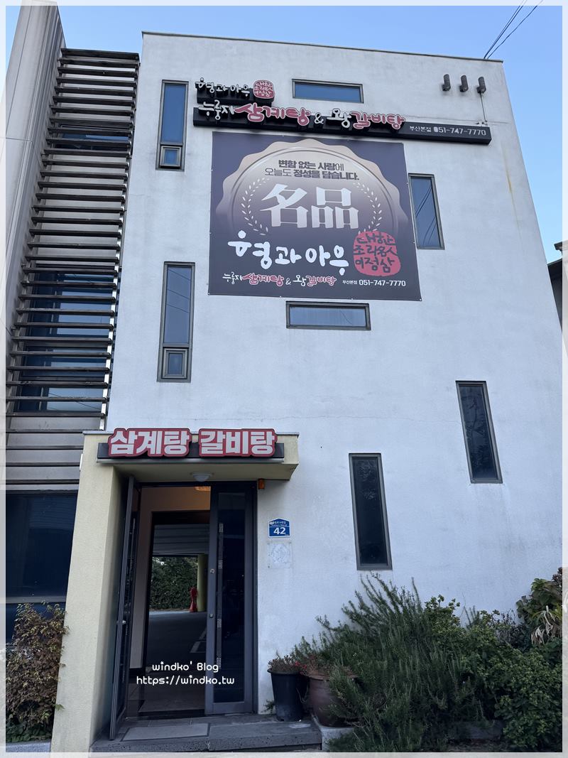 兄與弟鍋巴蔘雞湯&王排骨湯형과아우누룽지삼계탕&왕갈비탕)的店面相當大,一樓是停車場。