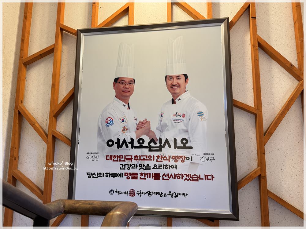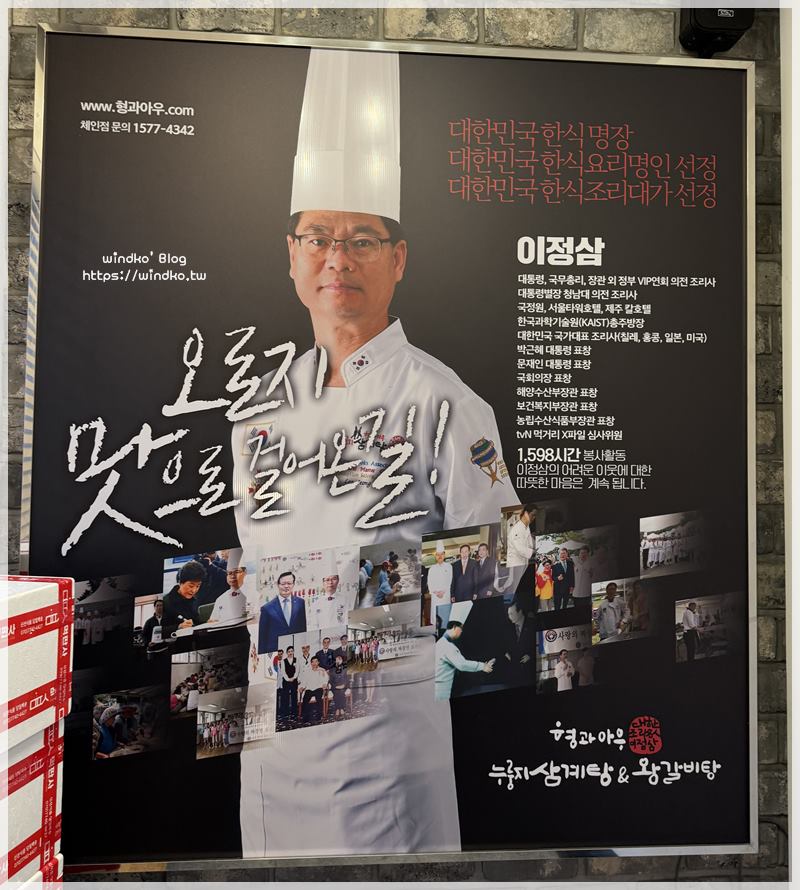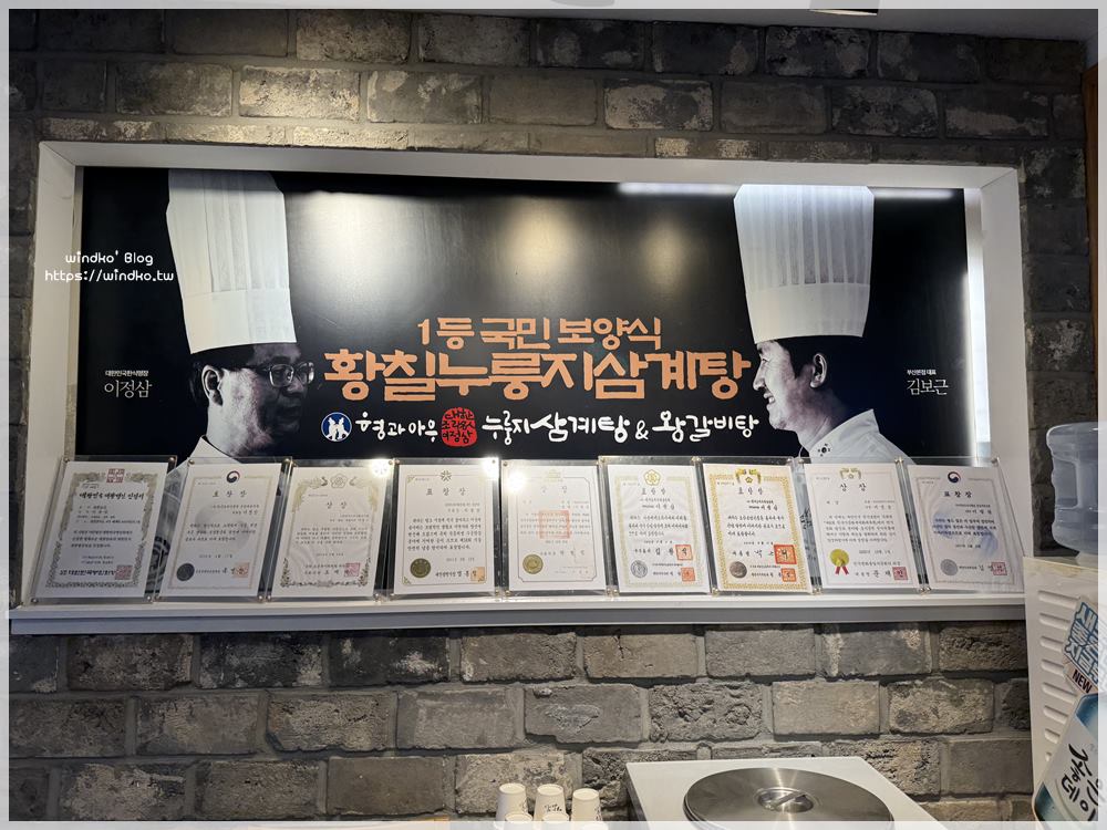 兄與弟鍋巴蔘雞湯&王排骨湯(형과아우누룽지삼계탕&왕갈비탕)從入口的樓梯間開始,就一直有著左邊那位的照片。