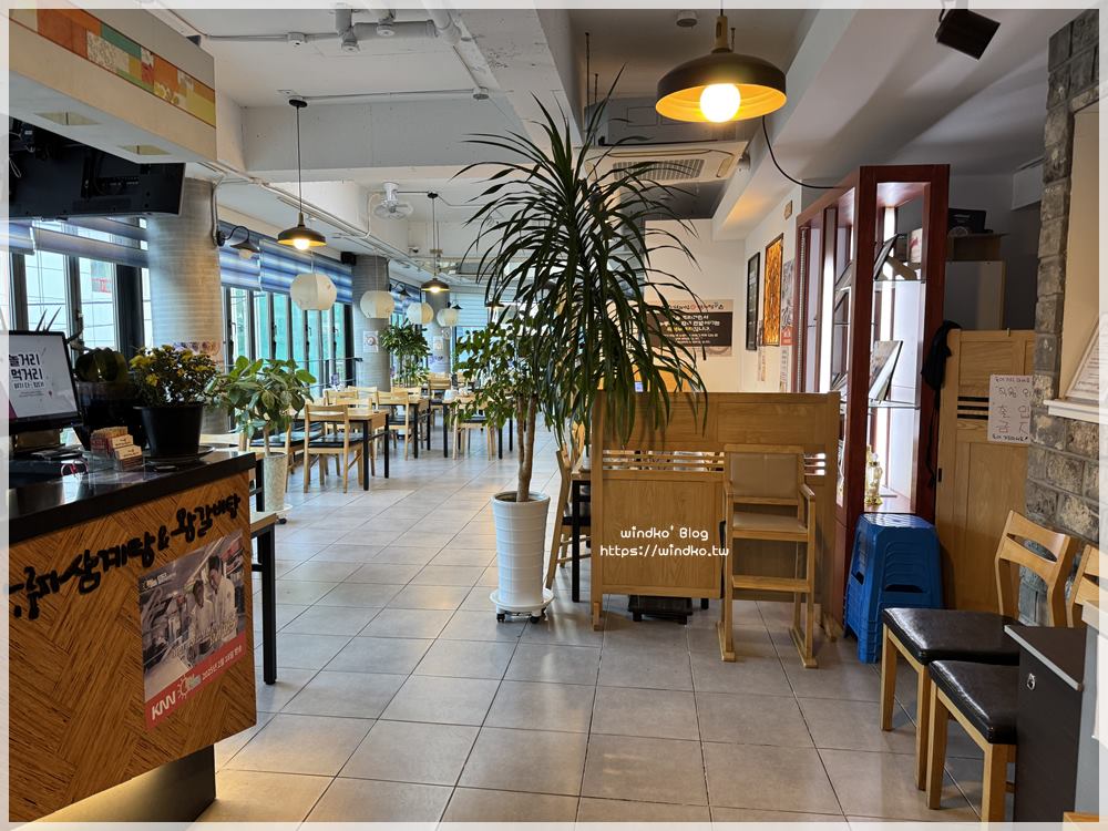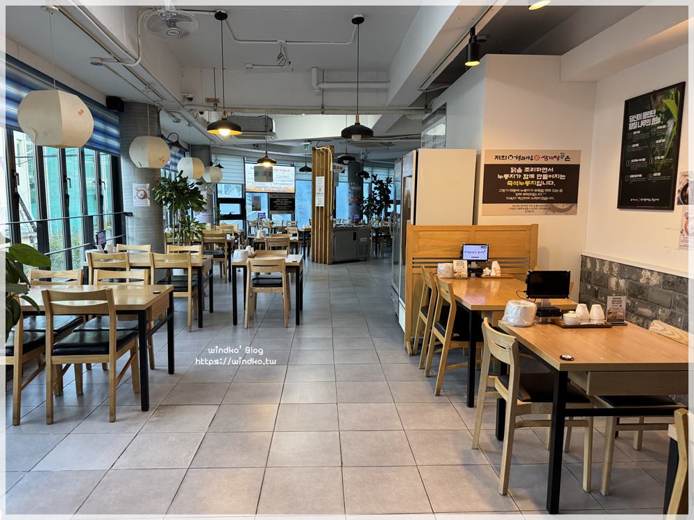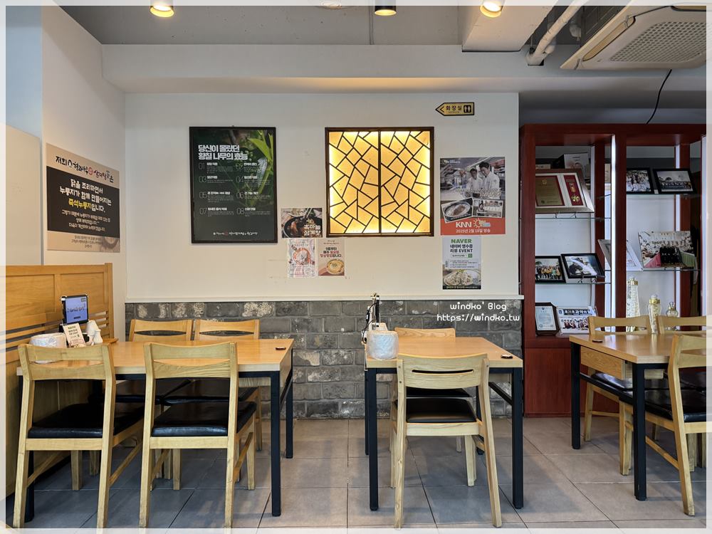我抵達兄與弟鍋巴蔘雞湯&王排骨湯형과아우누룽지삼계탕&왕갈비탕)的時間是下午四點半,所以店內只開了門口這一區的燈,裡頭大約還有 2/3 大小的區域。