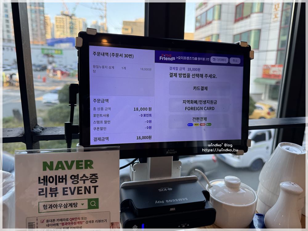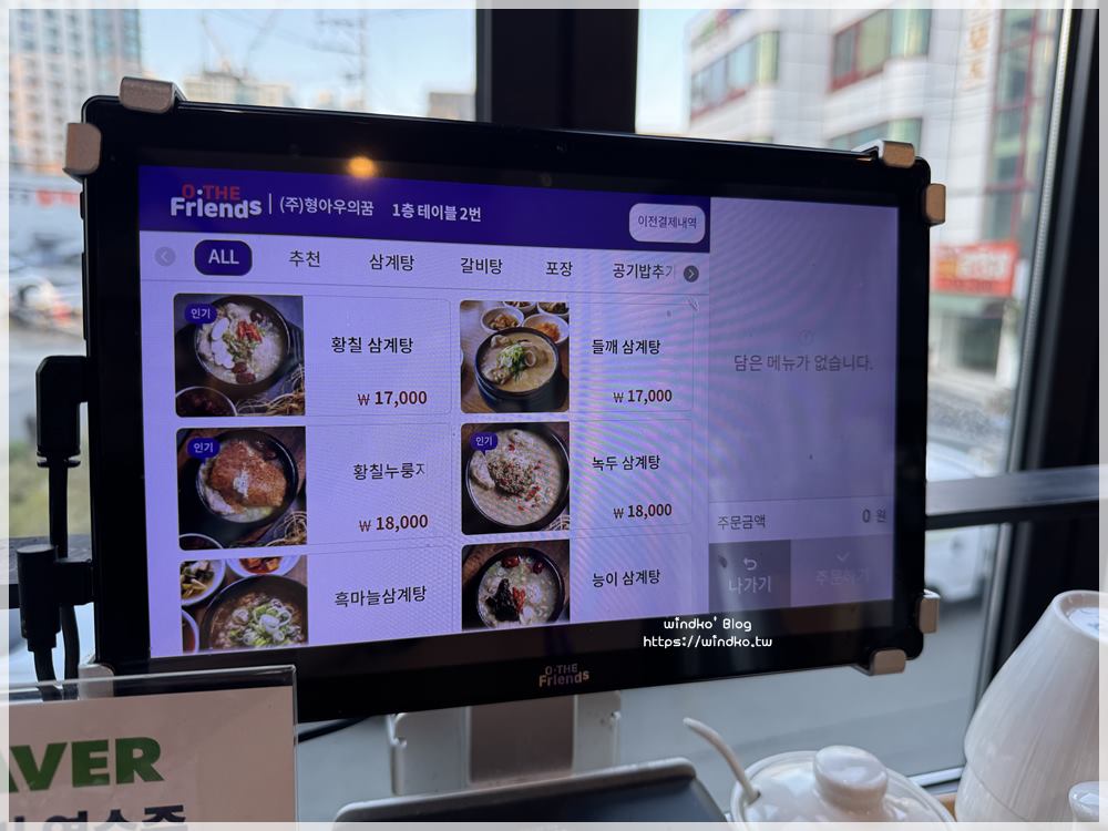 兄與弟鍋巴蔘雞湯&王排骨湯형과아우누룽지삼계탕&왕갈비탕)每張桌子都設有平板。