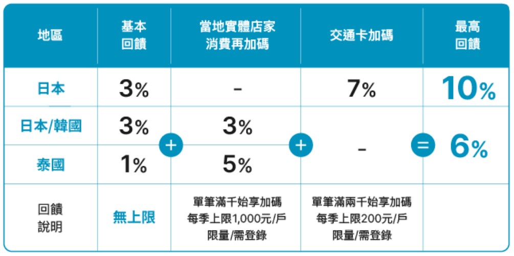 要注意的是:韓國實體店家(單筆滿千)加碼 3% 有回饋上限、限量、需登錄!每季僅需登錄一次即符合當季活動資格,不需每月重覆登錄。