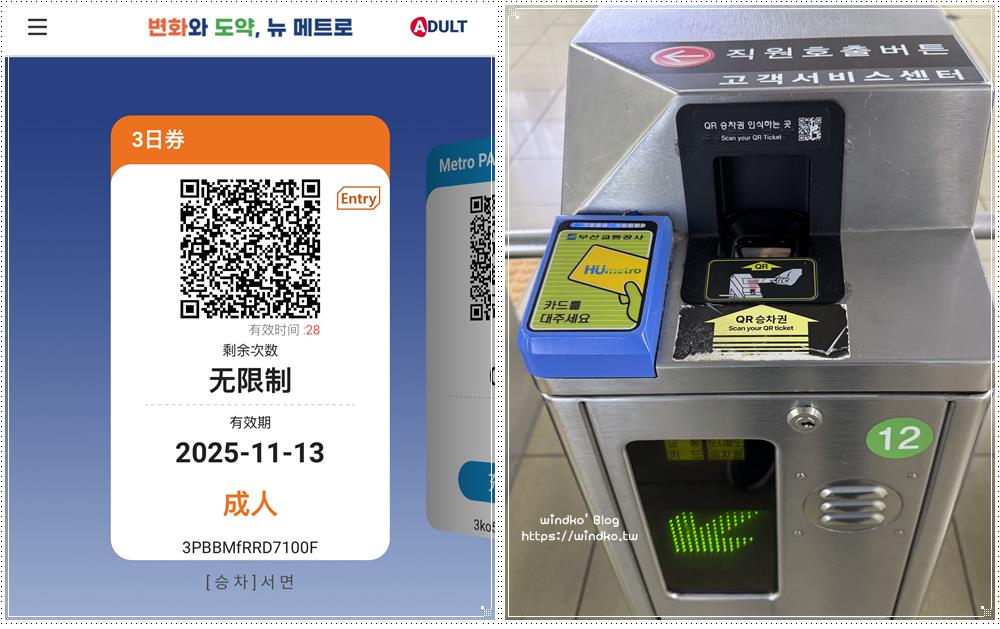 釜山地鐵一日券三日券 : 用手機APP 無限次數搭釜山地鐵:https://windko.tw/busan-metro-1day/