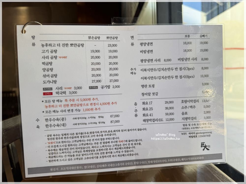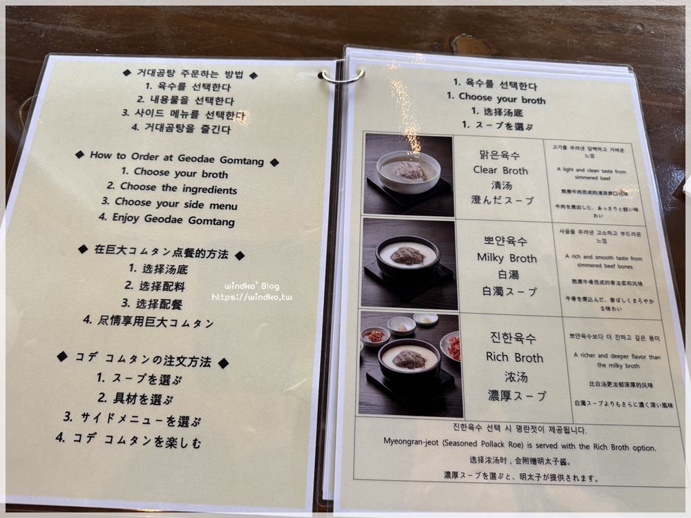 海雲台的巨大牛骨湯 거대곰탕 菜單與餐點