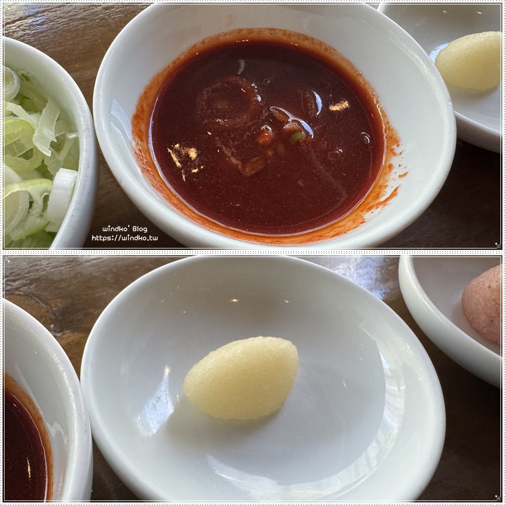 加了蔥與蒜泥的湯頭,跟剛剛有點不太一樣,有加分的效果,都很好喝,哈哈。