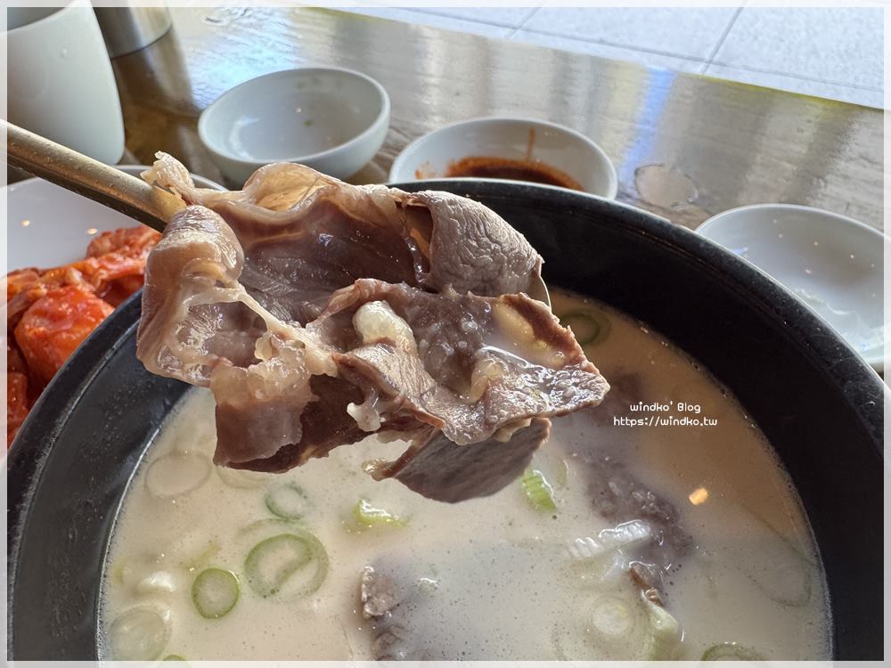 我點的 농후하고 더 진한 뽀얀곰탕(濃厚的雪白牛骨湯),就是牛肉片濃湯。