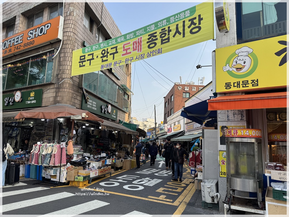 我們是從東大門站 4 號出口旁的入口開始逛,入口處所掛的布條是:문구・완구 도매 종합시장(文具・玩具 批發 綜合市場)。
