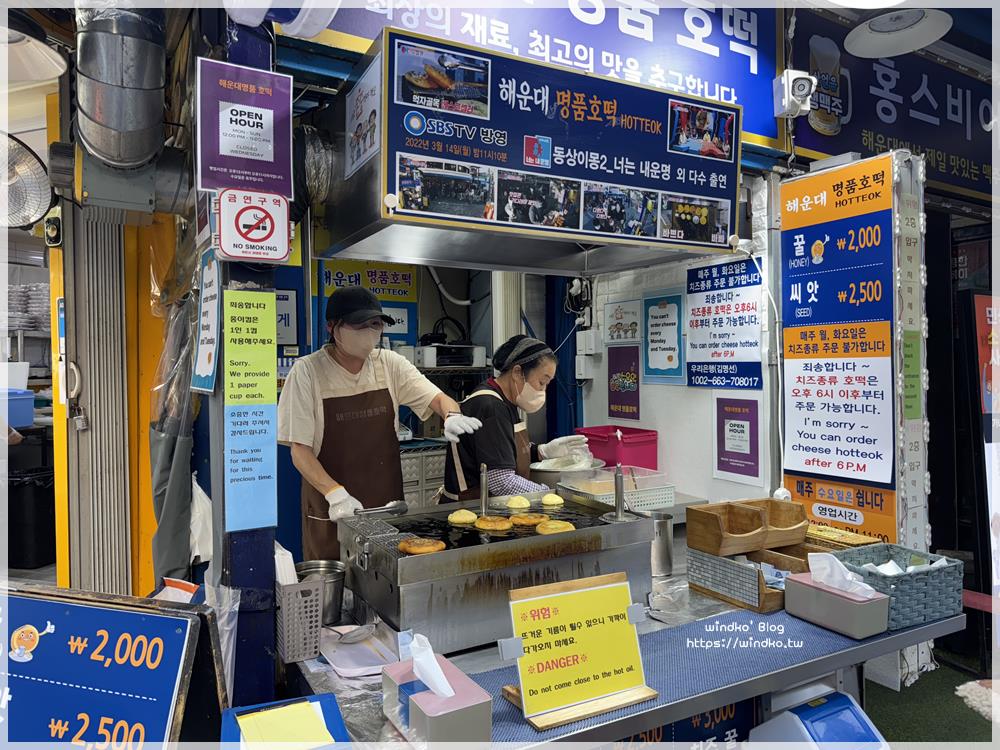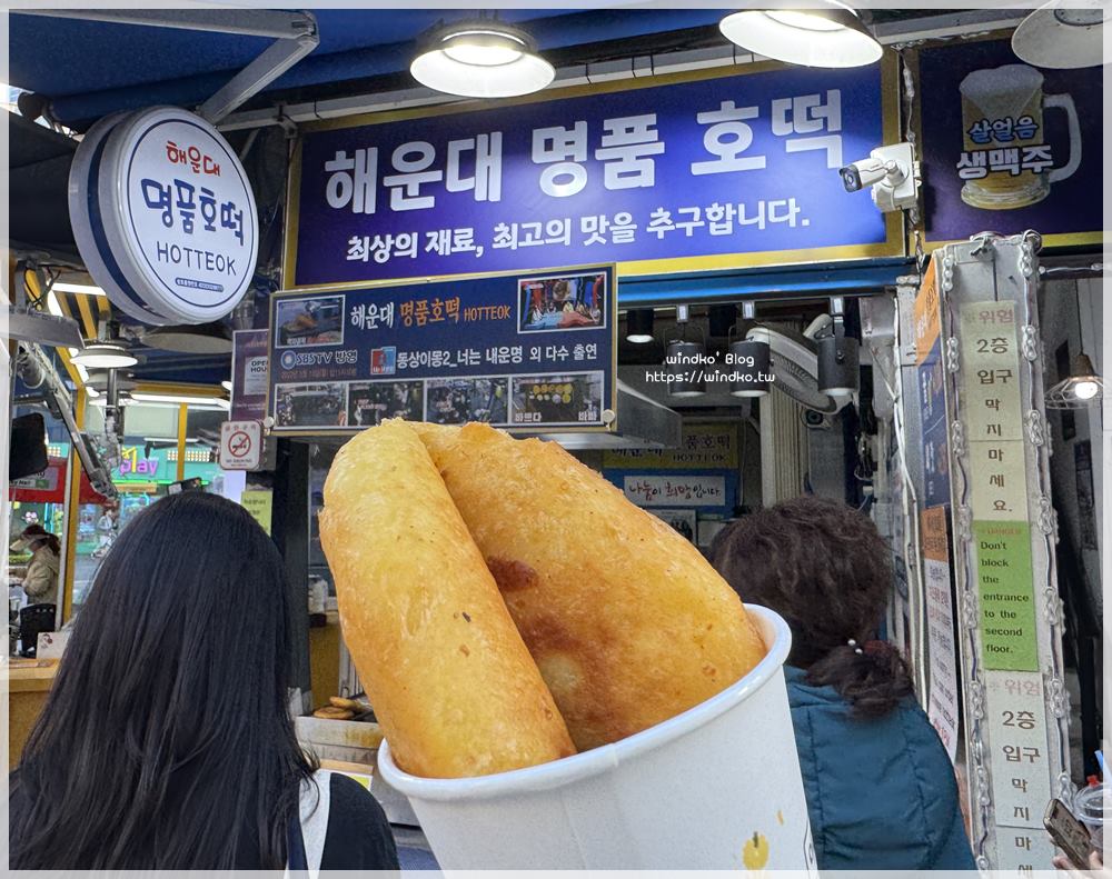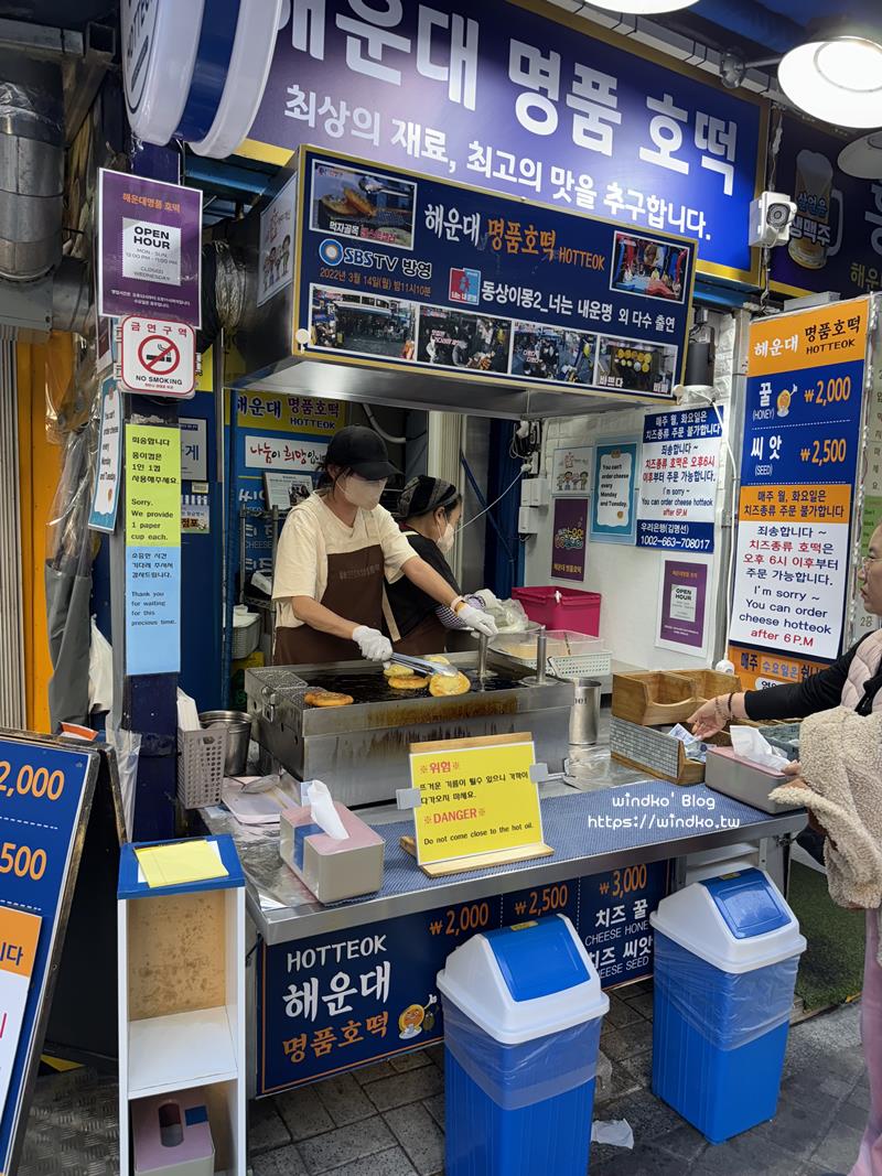 海雲台名品糖餅(해운대명품호떡)在海雲台市場的東邊入口處,就位於轉角位置,相當好認。