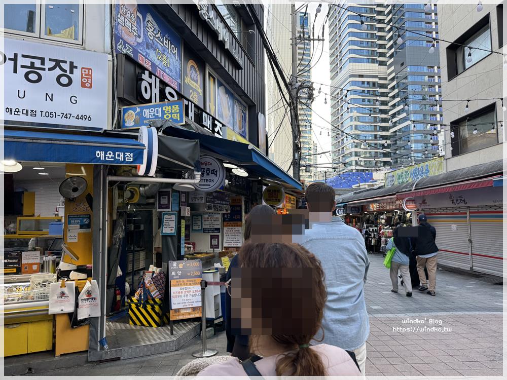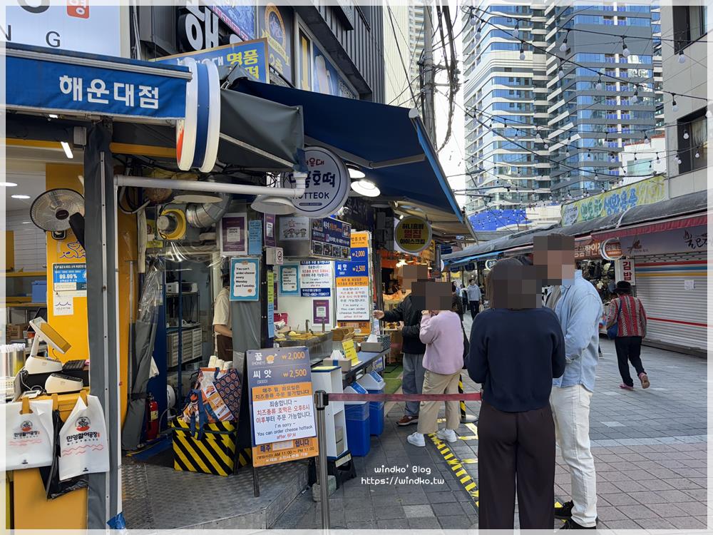 抵達海雲台市場入口時,發現海雲台名品糖餅(해운대명품호떡)只有五六個人在排隊,立刻加入排隊人潮。