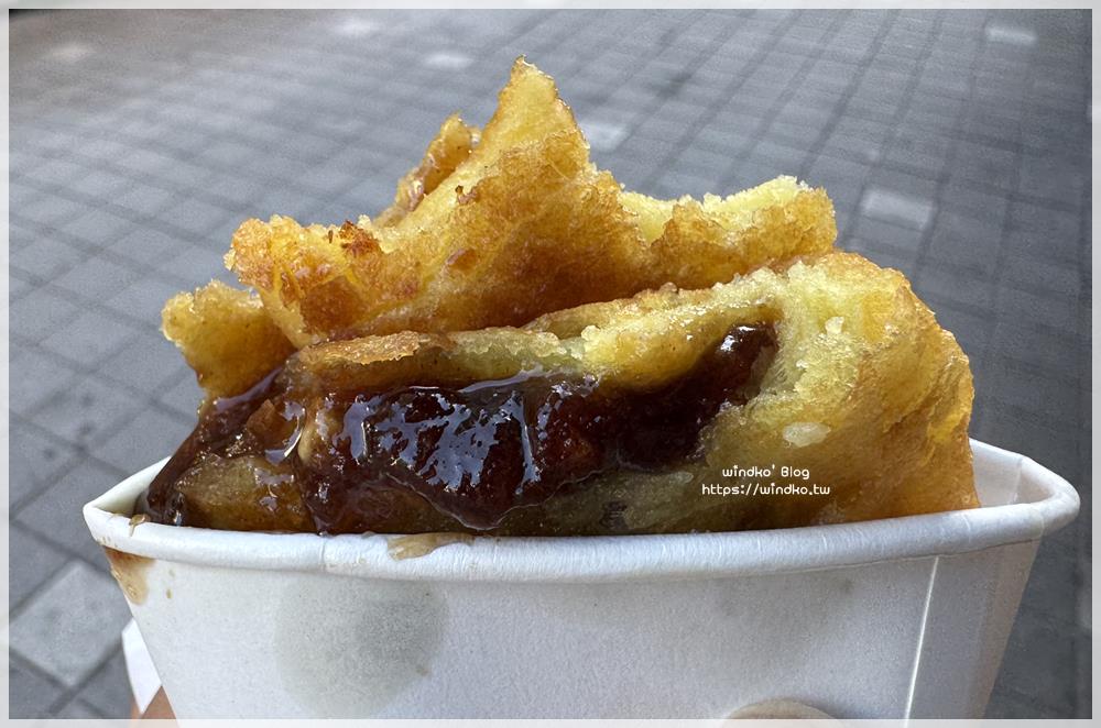 熱油泡煎的糖餅,咬下去得小心爆漿與燙傷(無誤),餅皮的 Q 彈咬感真的滿好吃的,下次我還會想買其它口味試試。