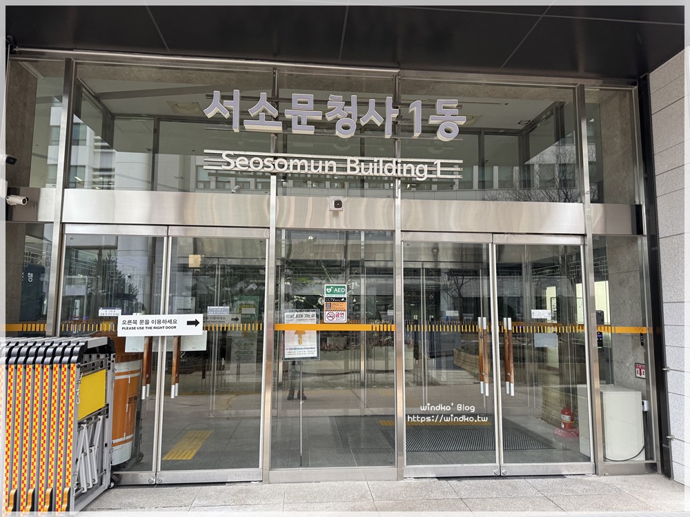 這裡是首爾市廳西小門政府大樓,在平常日的上班日時間,直接從大門進入,若是週末前來,則是走另一面的側門。