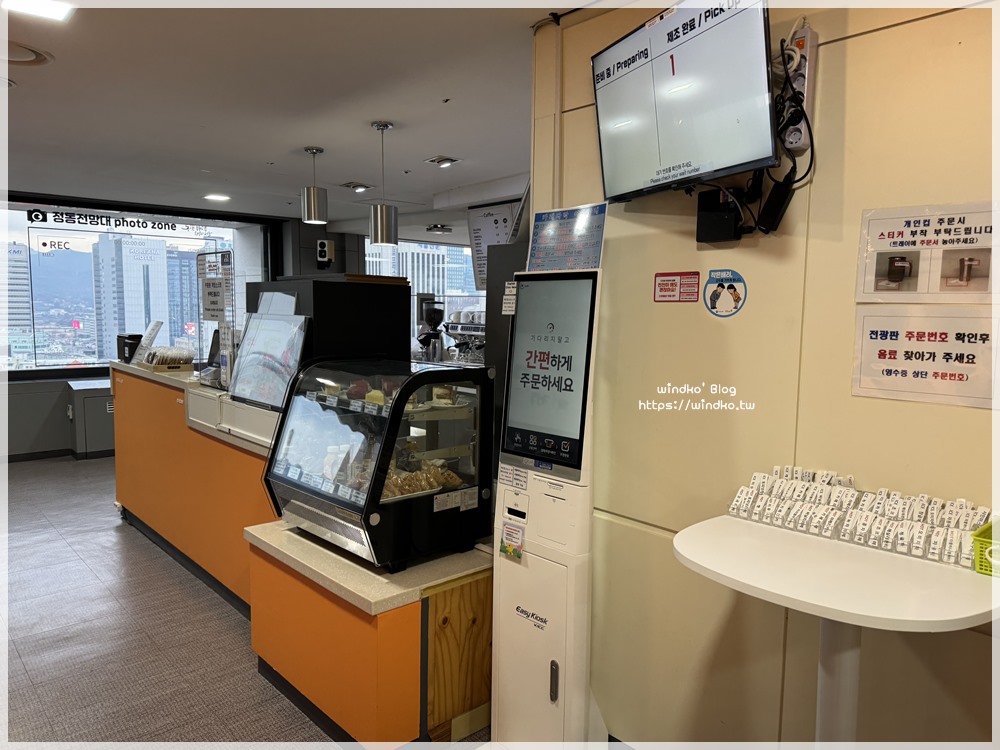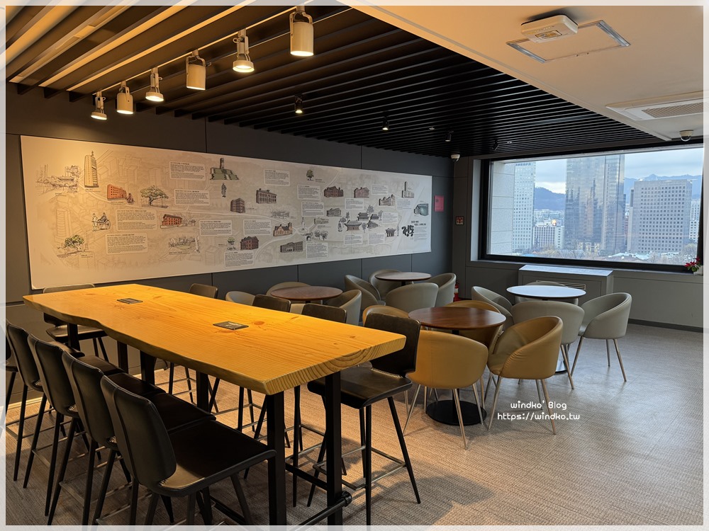 每個面向窗外的座位都是觀景台好位置!這點真的超棒的!點一杯咖啡,坐在這裡眺望首爾市景,實在很棒啊。