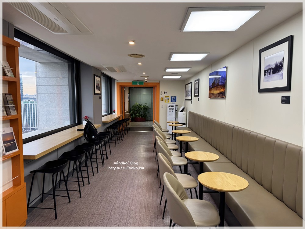 在這裡除了可以俯瞰美景以外,還附設了平價咖啡廳。買個一杯咖啡,坐在窗前,拍美照的同時也是當網美啊。(笑)只要避開會有大量上班族湧入的中午休息時間,絕對可以在這裡享受悠閒放空時光。