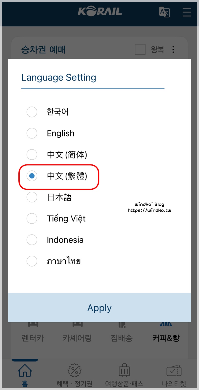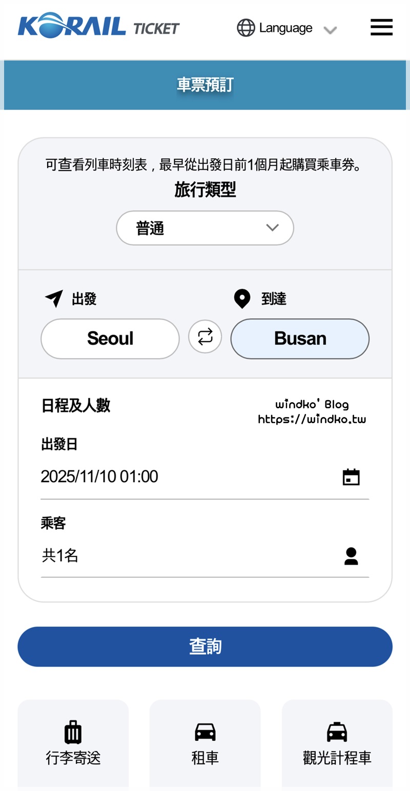 KORAIL 官網(國際版語言):https://www.korail.com/global/tw/main