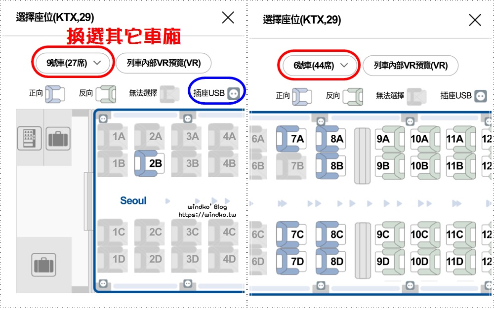 重要的是--可以自己選座位!也可以查看其它車廂的座位。