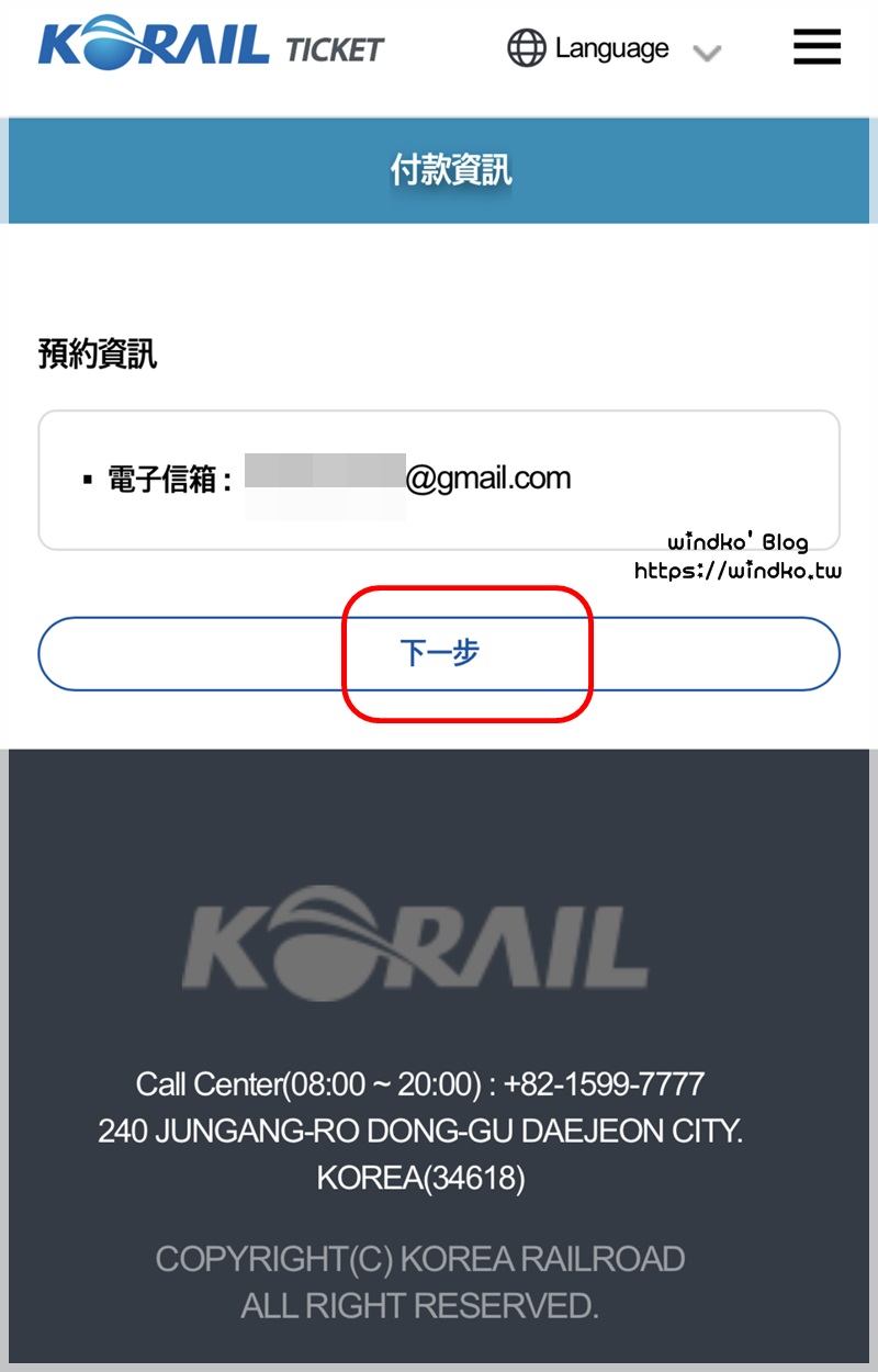 付款的最後一步,需要你再次填入 E-mail 信箱,會寄購票收據過來。