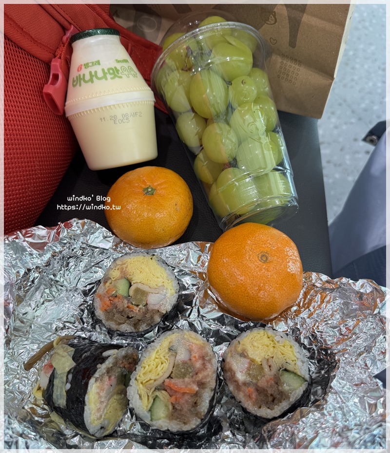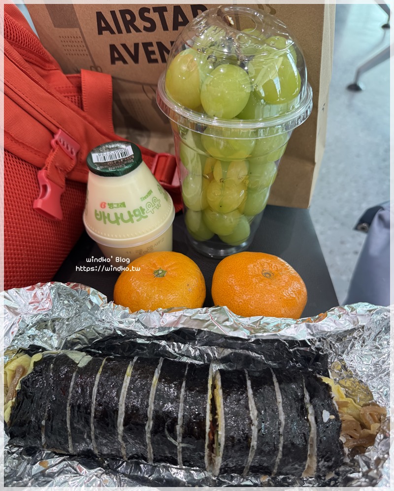 在韓國機場搭飛機回台灣前的儀式感:每次都會把來不及吃完的水果帶到機場繼續吃,順便再帶個飯捲當正餐。(笑)