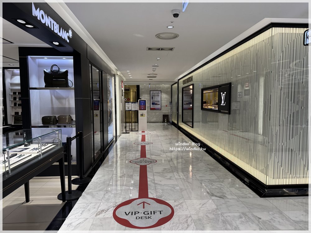 VIP & GIFT Desk(VIP 與禮品服務台)位在 LV 跟 MONTBLANC 之間的通道進入。