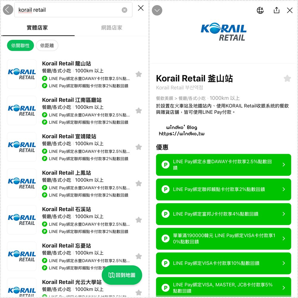 在 LINE PAY 裡頭的遊韓專區地圖區,輸入 KORAIL RETAIL,就能更進一步確認。