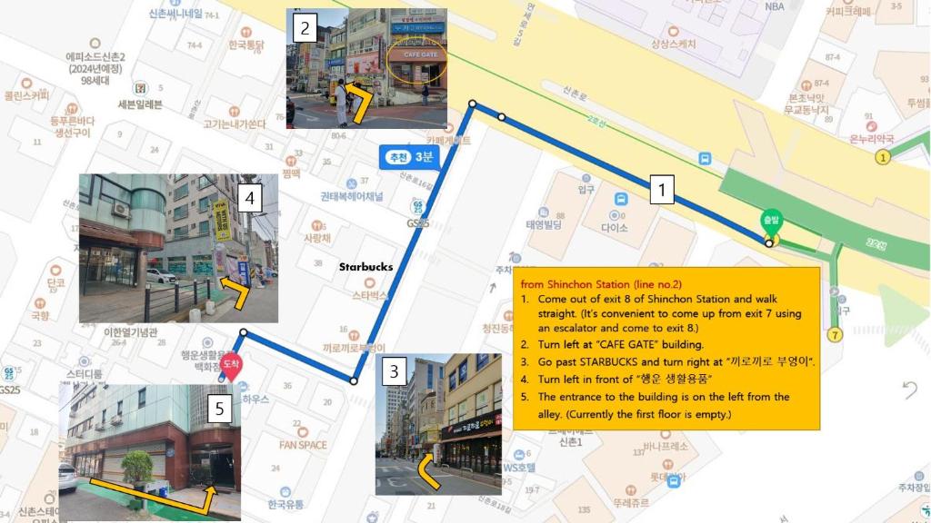 我前兩次的首爾旅行有旅伴,所以是住新村站 6 號出口附近的 Whouse-sinchonW House)。