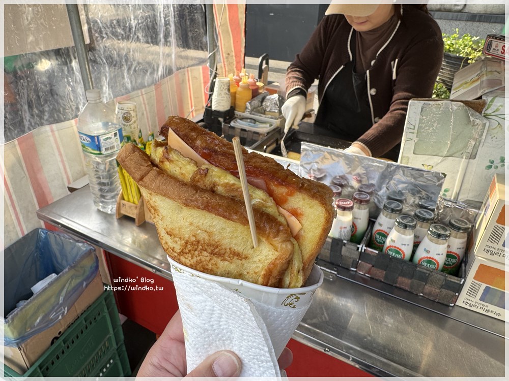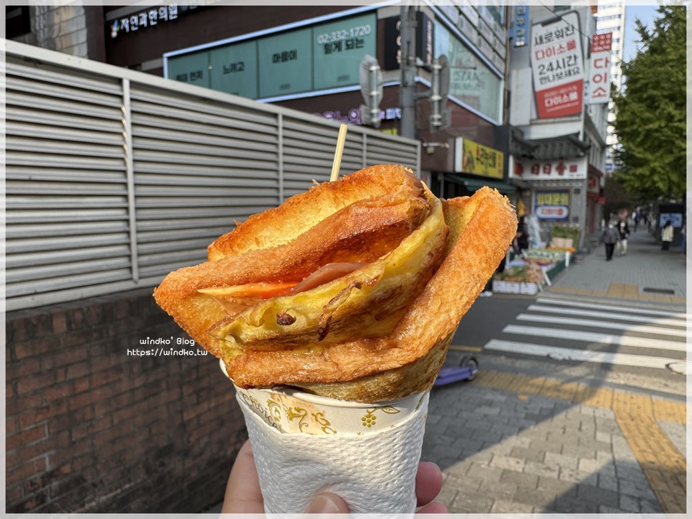 釜山早餐∥ 釜山大學正門口的名物吐司:現煎三層吐司超厚實又好吃
