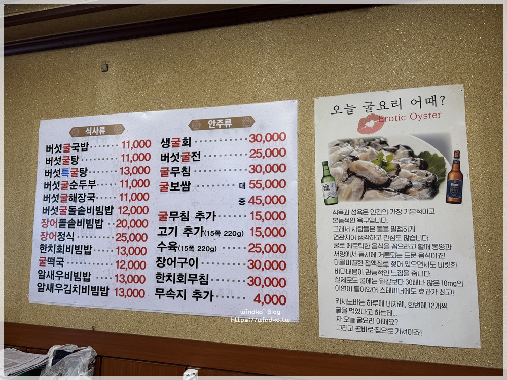굴예찬(牡蠣禮讚)是新堂站很有名的餐廳,從店名就知道它主打的特色是:굴(牡蠣)!有牡蠣湯飯、牡蠣醒酒湯、牡蠣湯、牡蠣嫩豆腐鍋、牡蠣石鍋拌飯、牡蠣煎餅、生牡蠣、牡蠣菜包肉等等,喜歡吃蚵仔的千萬別錯過啊。