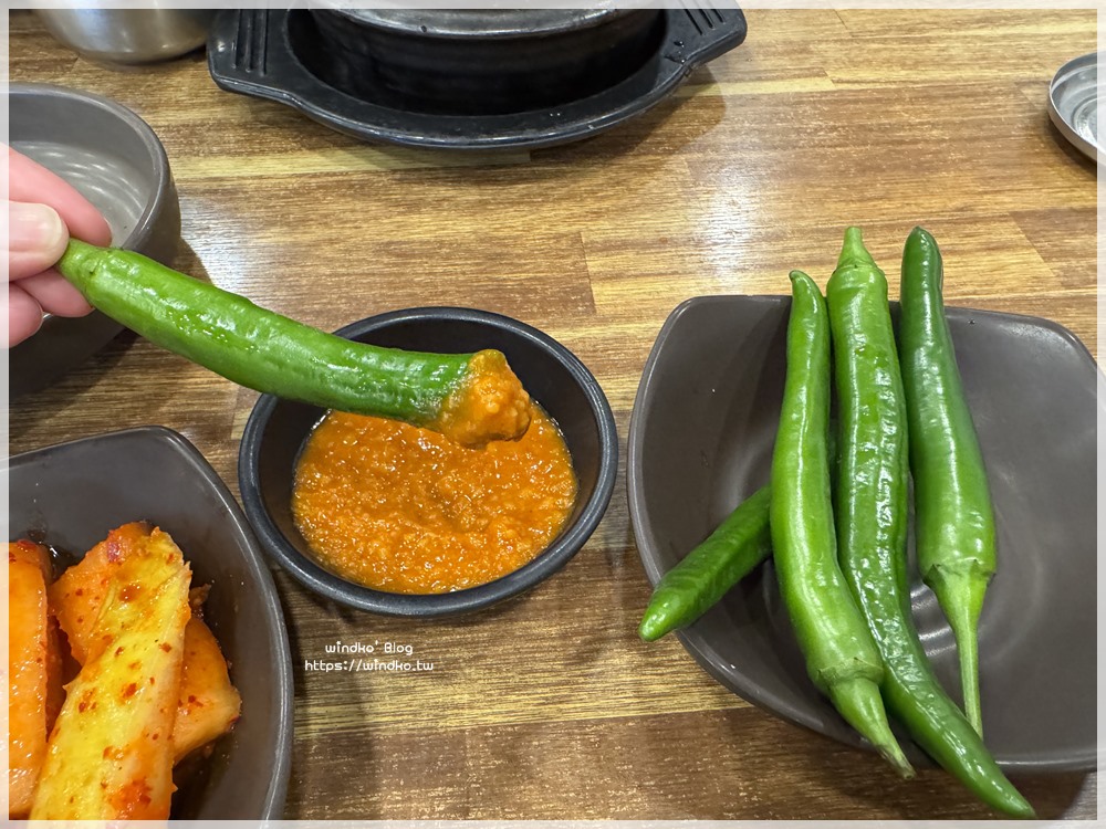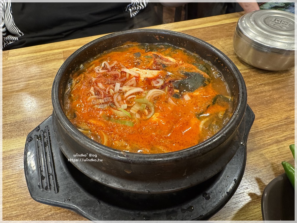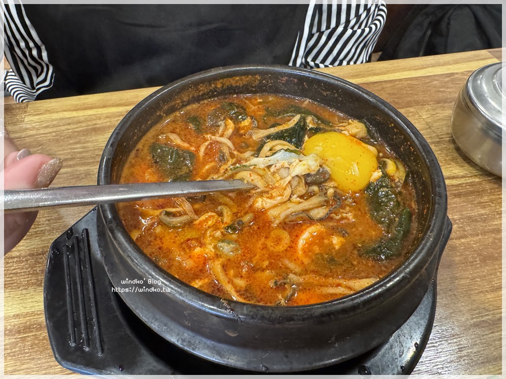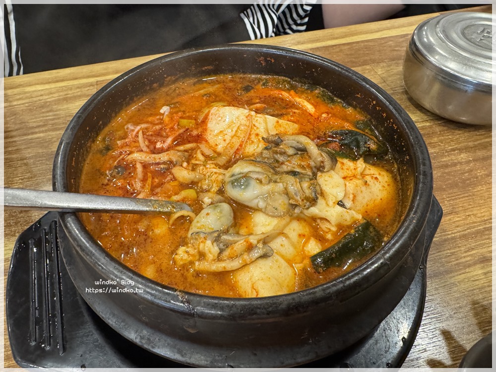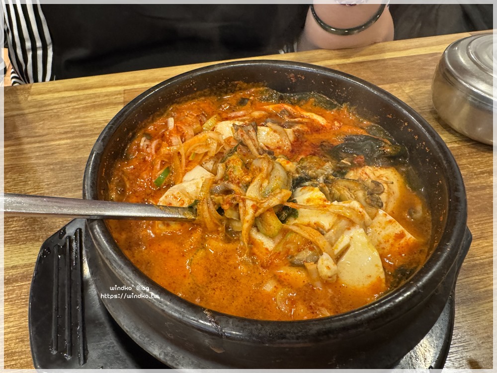 朋友不吃辣,但她點了香菇牡蠣嫩豆腐鍋(버섯굴순두부),據她表示,味道是她可以接受的,所以不算辣 XDD