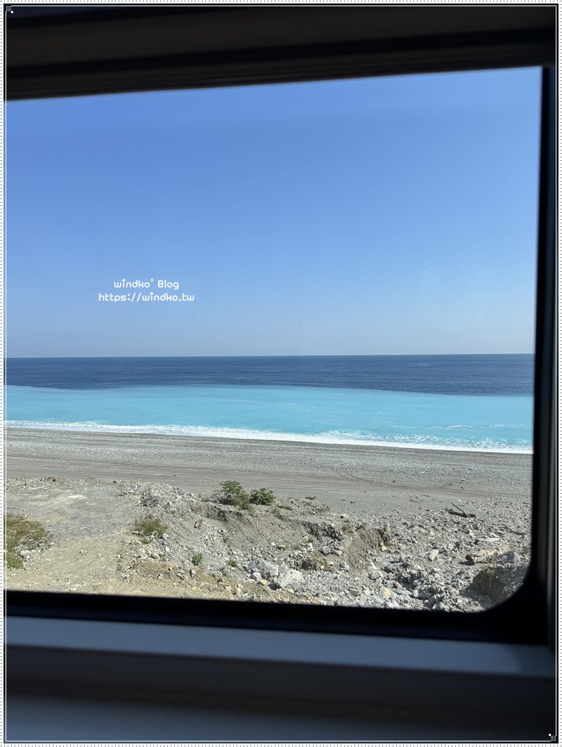 快抵達花蓮站,終於看到漂亮漸層色的海,但也只有一下下而已。(淚)