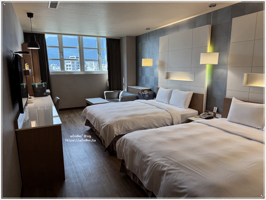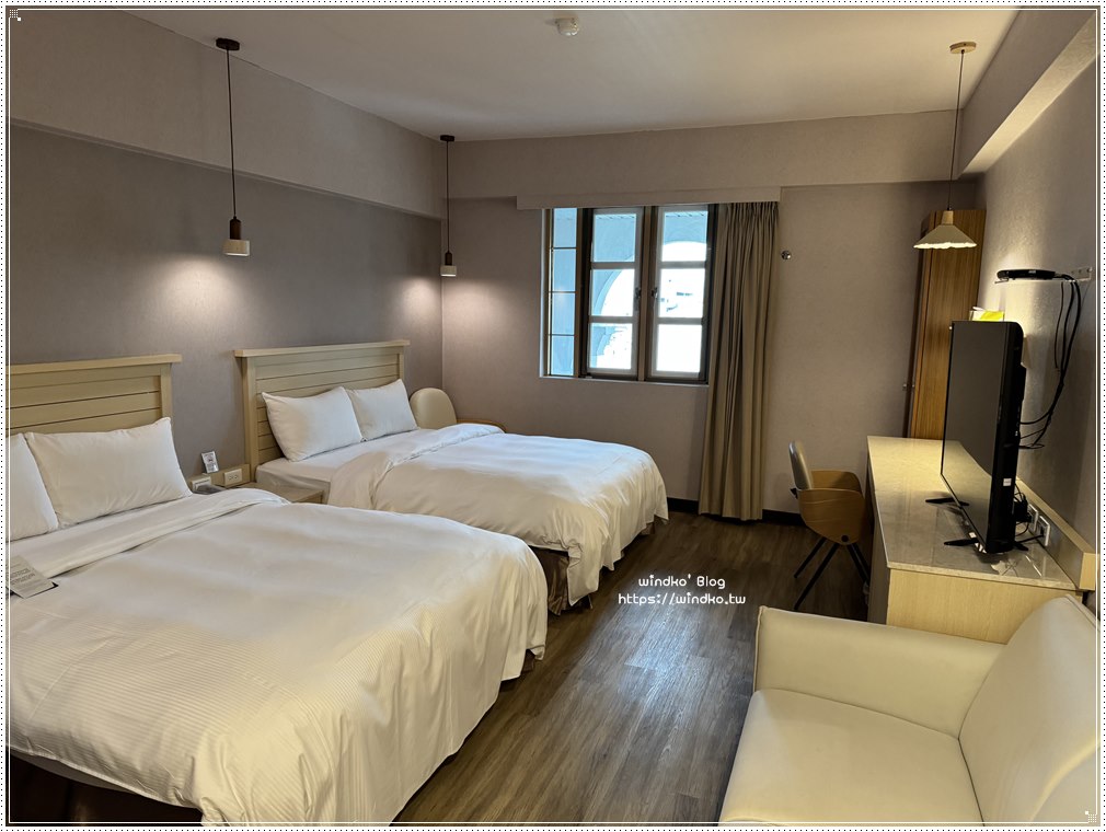 台東康橋也沒有兩張單人床的雙人房型,好像也沒有三人房,於是我直接訂兩張雙人床的四人房,一晚是 3186 元。