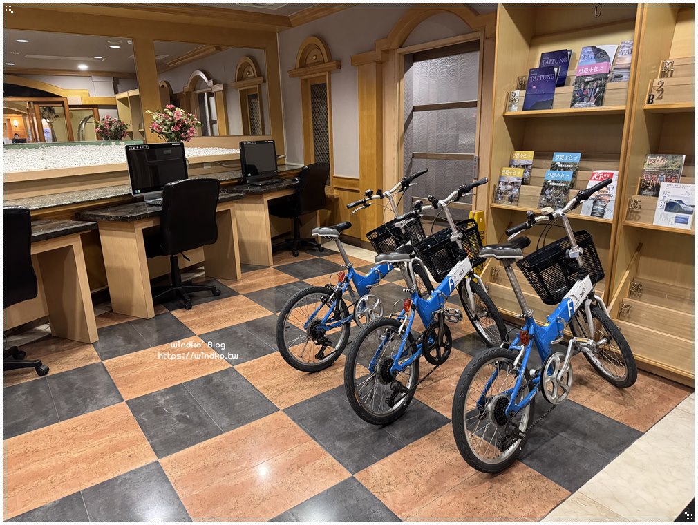 花蓮康橋的房客可以免費借用腳踏車,只需要到櫃台填寫單子,即可騎著腳踏車趴趴造。