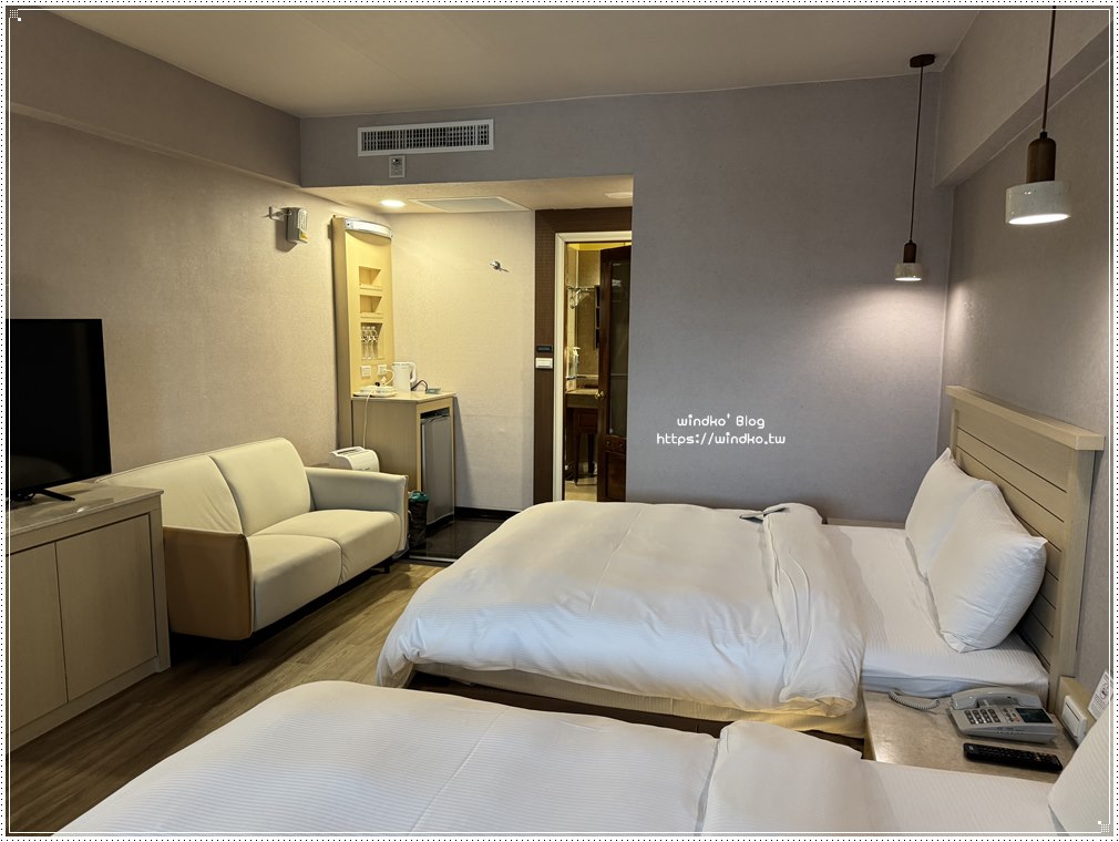 花蓮康橋沒有兩張單人床的雙人房,於是我直接訂了單+雙人床的三人房,一晚房費是 3074 元。