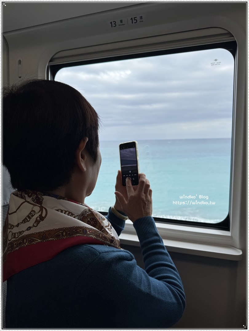 為了讓阿母可以看海景,所以斗六到花蓮、花蓮到台東、台東到新左營這三段火車,我選的全部是左側靠海的位置!