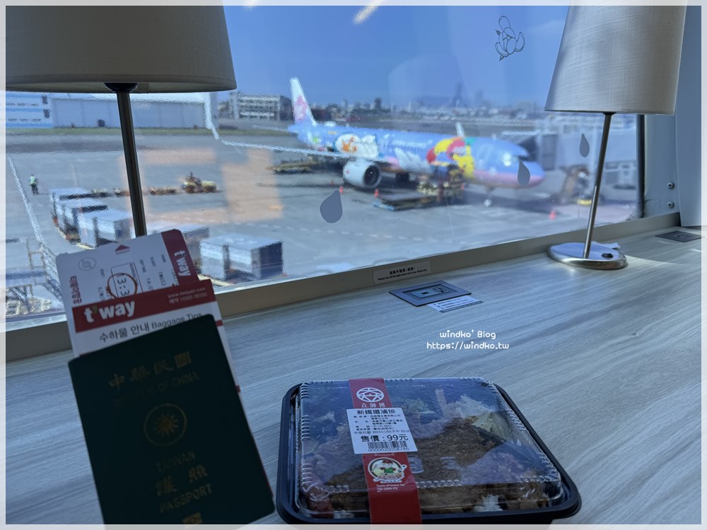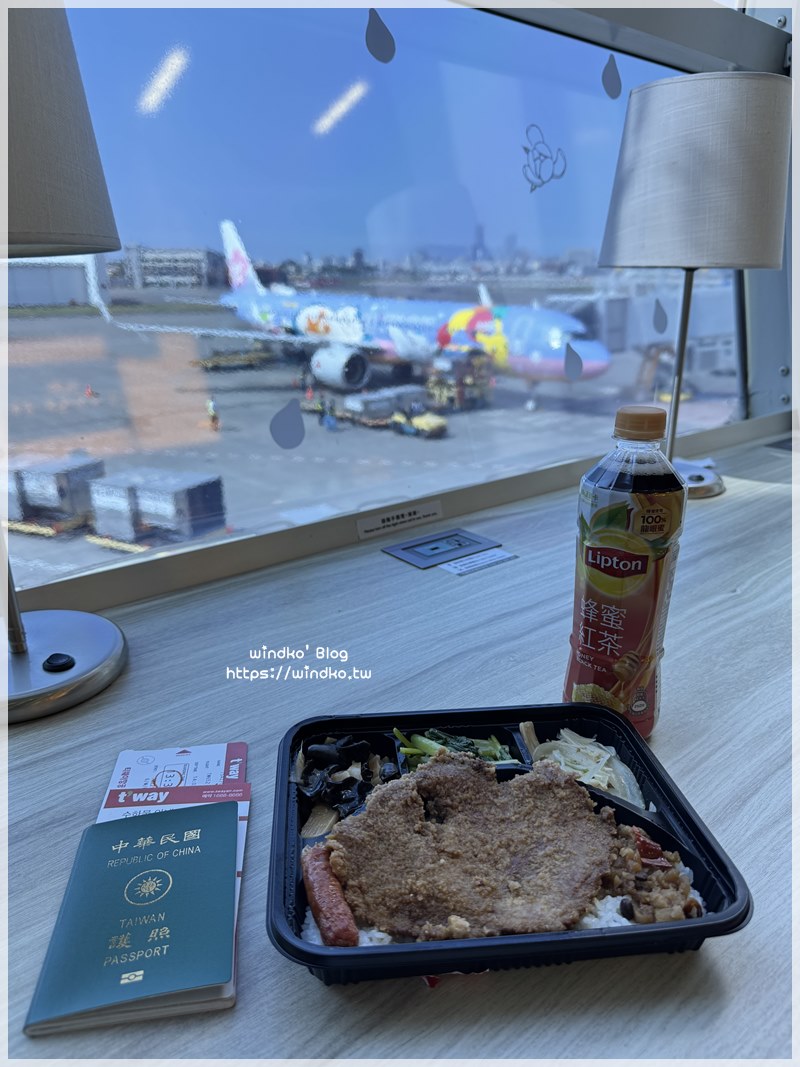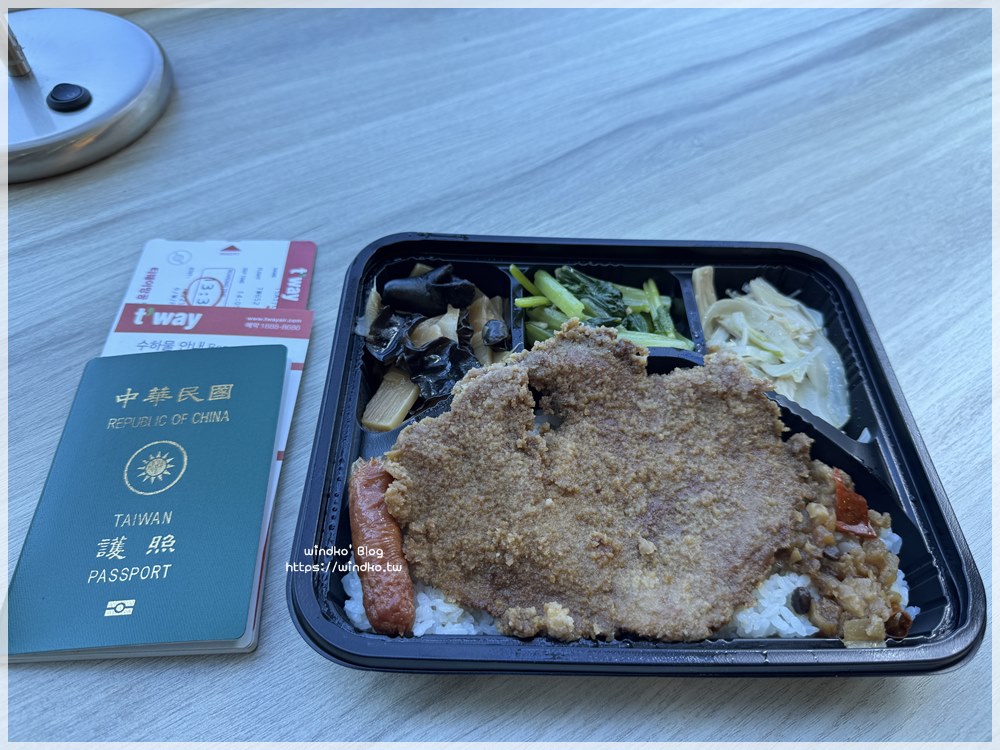於是,我飛韓國之前,就是在登機大廳裡吃便當,配一瓶自動販賣機的飲料。(笑)