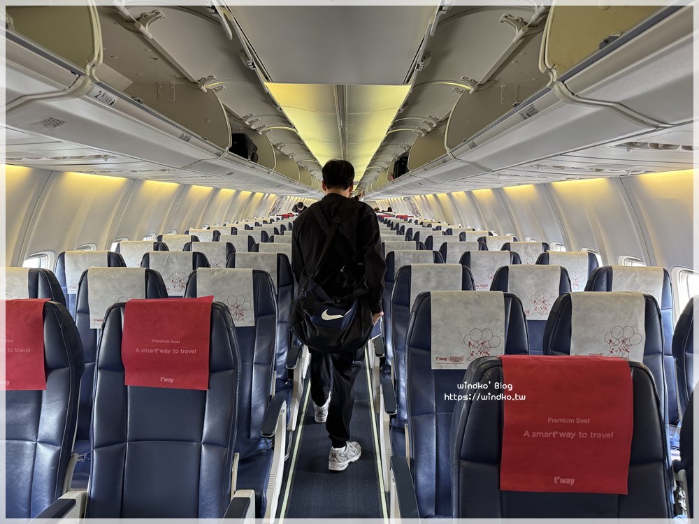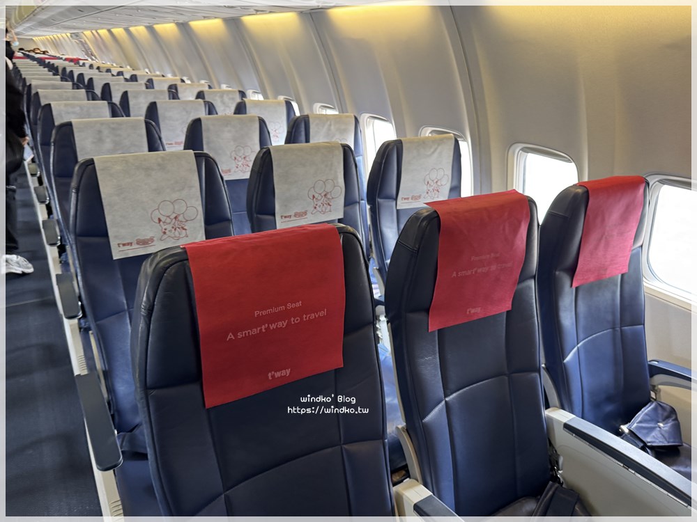 這是我第二次搭德威航空,但上一次搭德威是 2020 疫情爆發的那個二月份從釜山回高雄時,好久以前了,所以真的忘記德威航空的機艙內部顏色。於是我踏入機艙,看到座椅顏色的第一個感覺:很穩重的顏色 XDDD