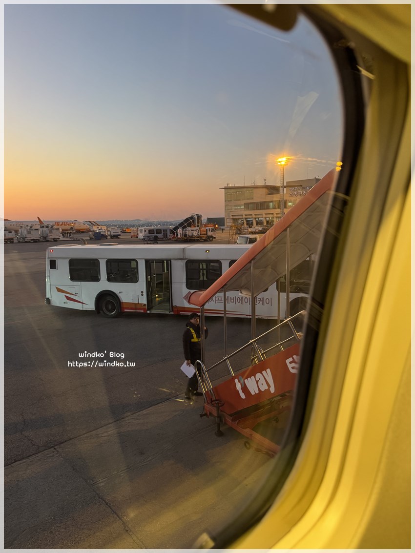 我原本以為德威航空是韓國的航空公司了,應該可以直接走空橋進金浦機場,結果~~~出了機艙門,還是看到等待中的接駁巴士。
